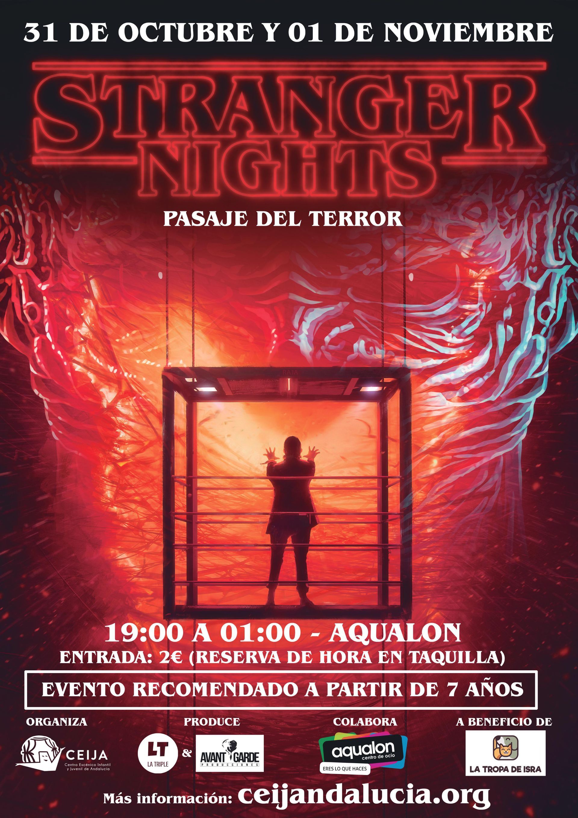 El CEIJA organiza este año su habitual evento de Halloween el 31 de octubre y 01 de noviembre a beneficio de la asociación animalista La Tropa de Isra Como viene siendo costumbre desde sus inicios en 2021, la asociación artística onubense CEIJA ha comenzado la gestación de su 3º pasaje del terror. Tras desarrollarlo en Aljaraque (2021) y posteriormente Corrales (2022) con gran éxito, superando la última edición a la anterior, en esta ocasión será Huelva capital el epicentro desde el que lo llevarán a cabo, concretamente, en el local del antiguo bazar chino D'Kasa del Centro de Ocio Aqualon . Este año presenta varias novedades que serán la delicia del público onubense: en primer lugar , la temática , inspirada en el aclamado universo de “ Stranger Things ”, siendo de hecho el título del pasaje “Stranger Nights”; en segundo lugar , la producción correrá a cargo de la compañía teatral de Huelva, La Triple , y la productora de eventos argentina, Avant Garde Producciones , junto a la participación directa del alumnado y familias del CEIJA ; en tercer lugar , los días del evento serán dos, el 31 de octubre y 01 de noviembre de 19:00 a 01:00 , con la taquilla abierta desde una hora antes , a fin de que el público pueda ir y disfrutar cuando mejor le convenga; y en cuarto lugar , ¡se acabaron las largas colas de espera! Se podrán conseguir las entradas en la taquilla , con reserva de hora, es decir, que el público solo tiene que ir, obtener su entrada sabiendo la hora aproximada de cuándo le toca, y disfrutar por la zona hasta entonces, evitando así aglomeraciones o extensas esperas de pie. ¡ACTUALIZACIÓN PARA EL 01 DE NOVIEMBRE: ENTRADA POR ORDEN DE LLEGADA! El importe de la entrada será de 2 euros a beneficio de la Asociación La Tropa de Isra , que ayuda a rescatar, acoger y entregar en adopción responsable a multitud de animales que se encuentran en la calle , dando a conocer además la situación real de lo que padecen estas pobres criaturas, a fin de concienciar también a la sociedad sobre la importancia de su cuidado . "Stranger Nights" es un pasaje del terror recomendado a partir de 7 años , aunque no se impedirá por ello la entrada a menores de dicha edad, siendo los grupos en torno a 6-8 personas .